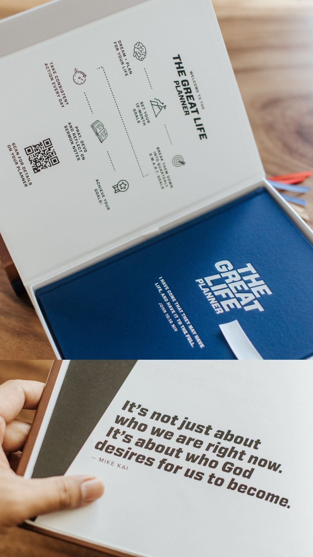 The Great Life Planner is designed to help you stay organized, inspired, and connected. It includes: 12-Month Calendar, Goal Mapping, 365-Day Bible Reading Plan, Prayer + Sermon Notes, Weekly Scheduling, Organizational Tabs + Ribbon Markers, Luxurious Vegan Leather Hardcover, Back Folder Sleeve. Perfect for anyone looking to align their life with their faith and goals, the Great Life Planner is more than just a planner—it’s your companion for living intentionally.